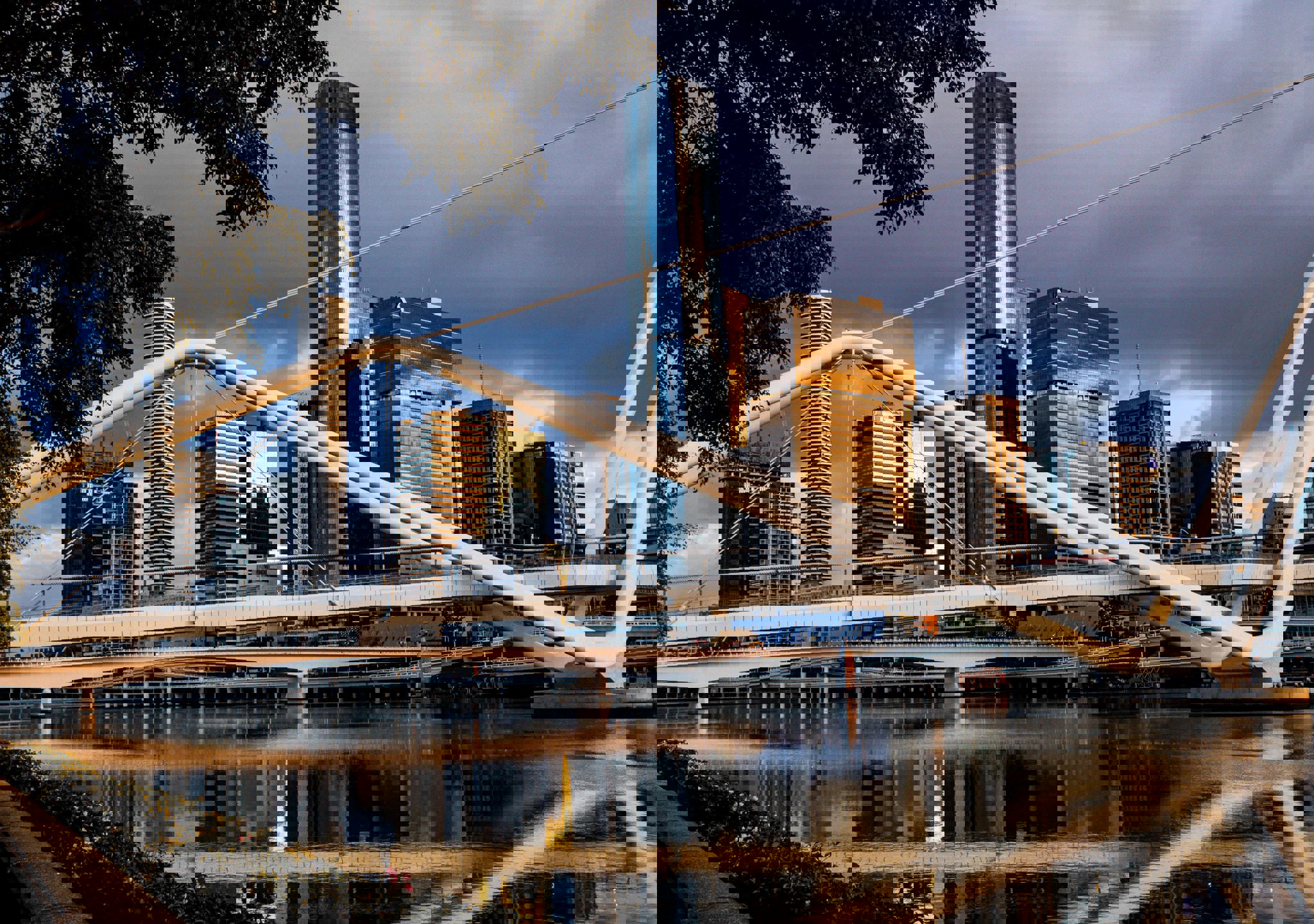 A distinctive pedestrian and cycle bridge connecting South Brisbane to the CBD, known for its unique tensegrity structure and solar-powered lighting system.